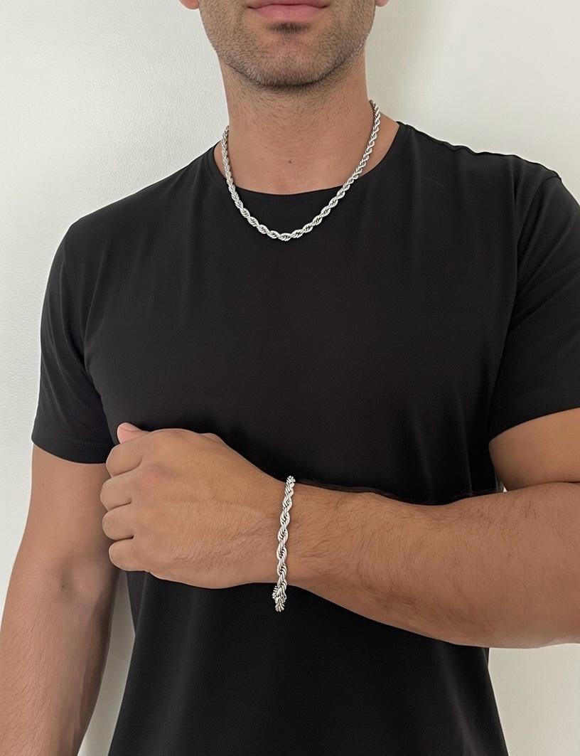 Pulsera de Acero Quirúrgico con eslabón soga de 6 mm de ancho y 20 cm de largo.